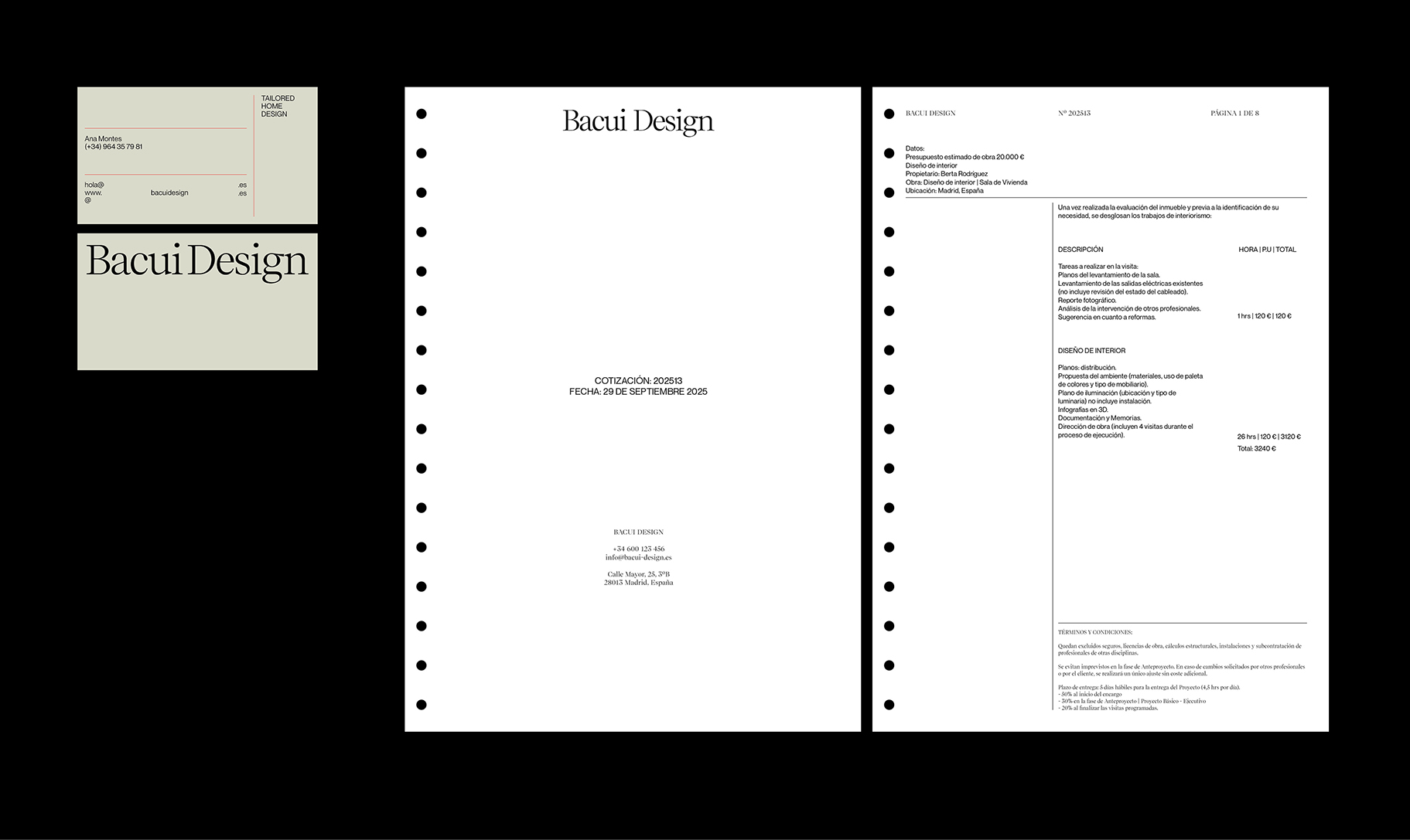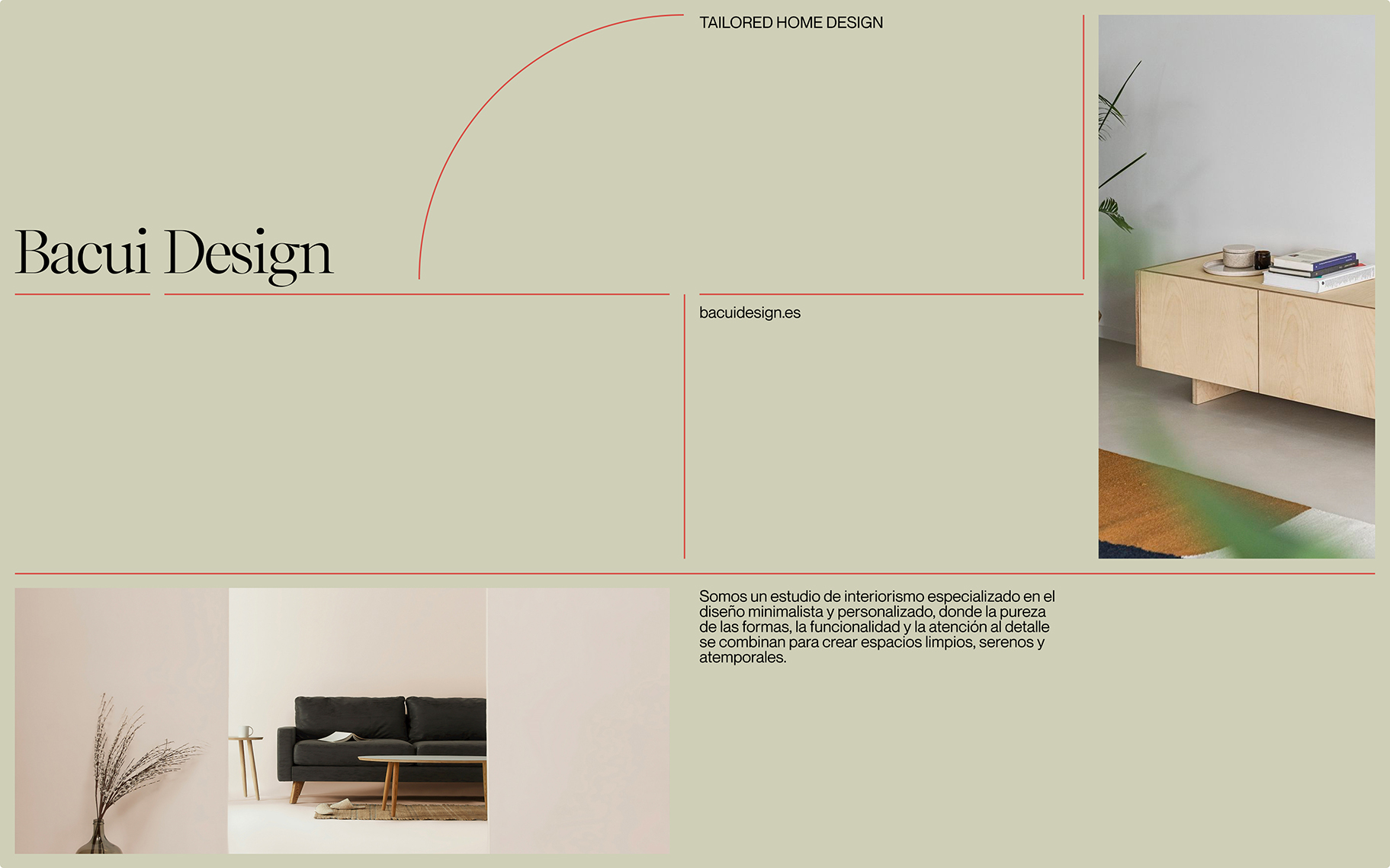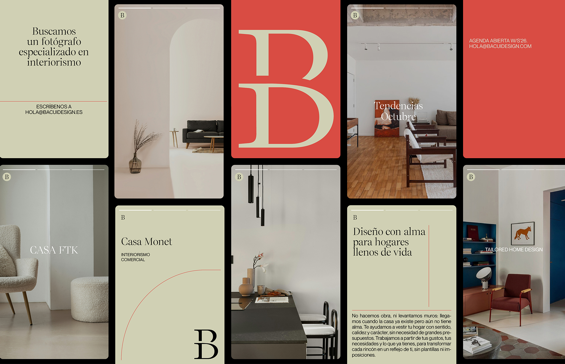 Identidad visual para un estudio de diseño de interiores que ofrece servicios especializados y personalizados de consultoría en decoración del hogar. Con un espíritu detallista y accesible, la marca transmite la calidez del hogar con una tipografía y colores modernos a la par que clásicos. El isotipo representa las iniciales B y D en un solo elemento, creando un símbolo elegante y reconocible.